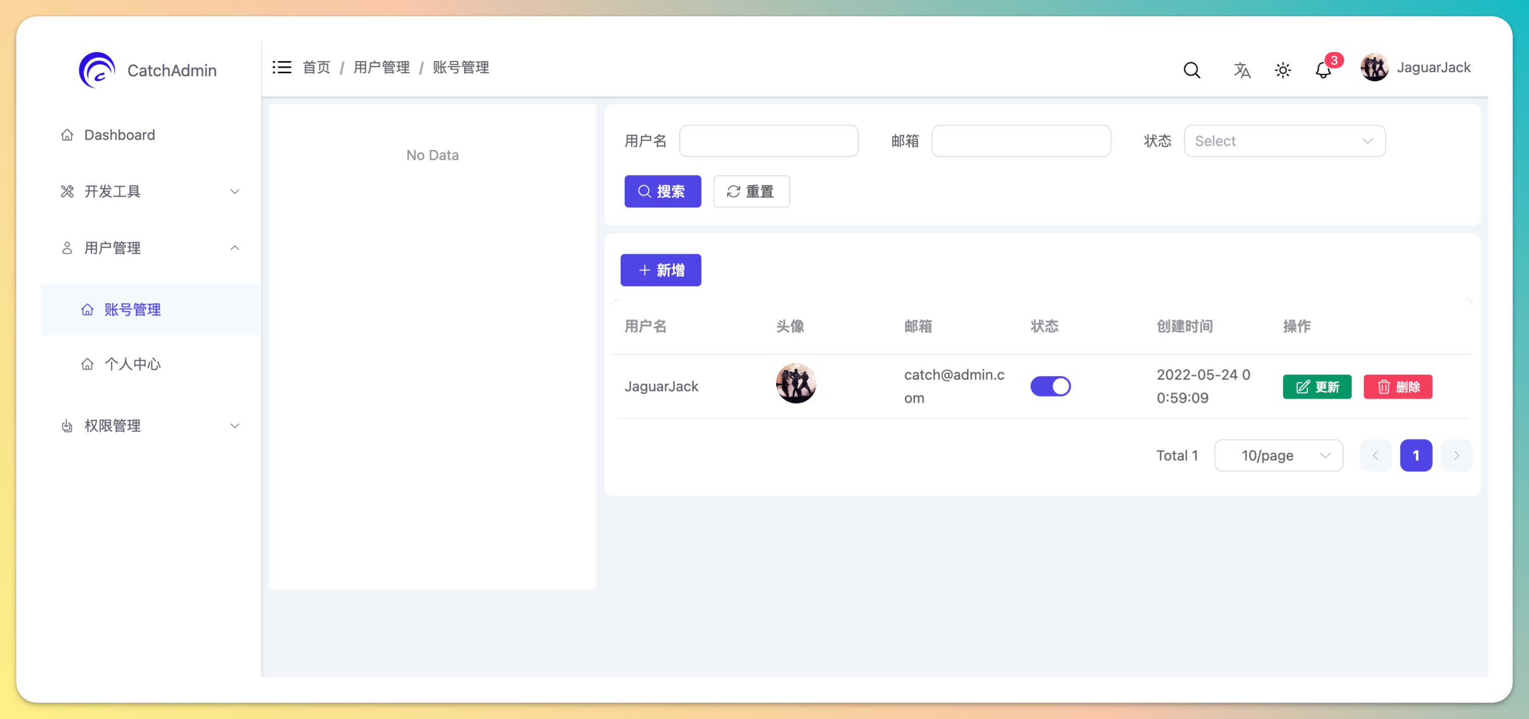 CatchAdmin是一款基于thinkphp8.0 framework和 element admin开发而成的后台管理系统。因为 thinkphp 的简单高效,文档齐全。在看了很多 thinkphp 生态中的后台管理系统,发现没有一款合适的前后端分离系统。遂开发了 CatchAdmin。 基于新版 thinkphp8 服务者的特性,后台的每个模块都可以独立成一个服务,模块之间的功能职责更加清晰。同时后台也兼顾了后台开发前端页面,减少了前端页面代码的输出。将表格和表单都封装成了后台组件,可在后台中通过 Json 数据轻松渲染出前端页面,大大提高了开发效率。CatchAdmin 同时也提供 Http 客户端,Excel 的导入导出,敏感词检测,大量的内置 commands 等一系列组件工具,提高使用后台的开发体验。