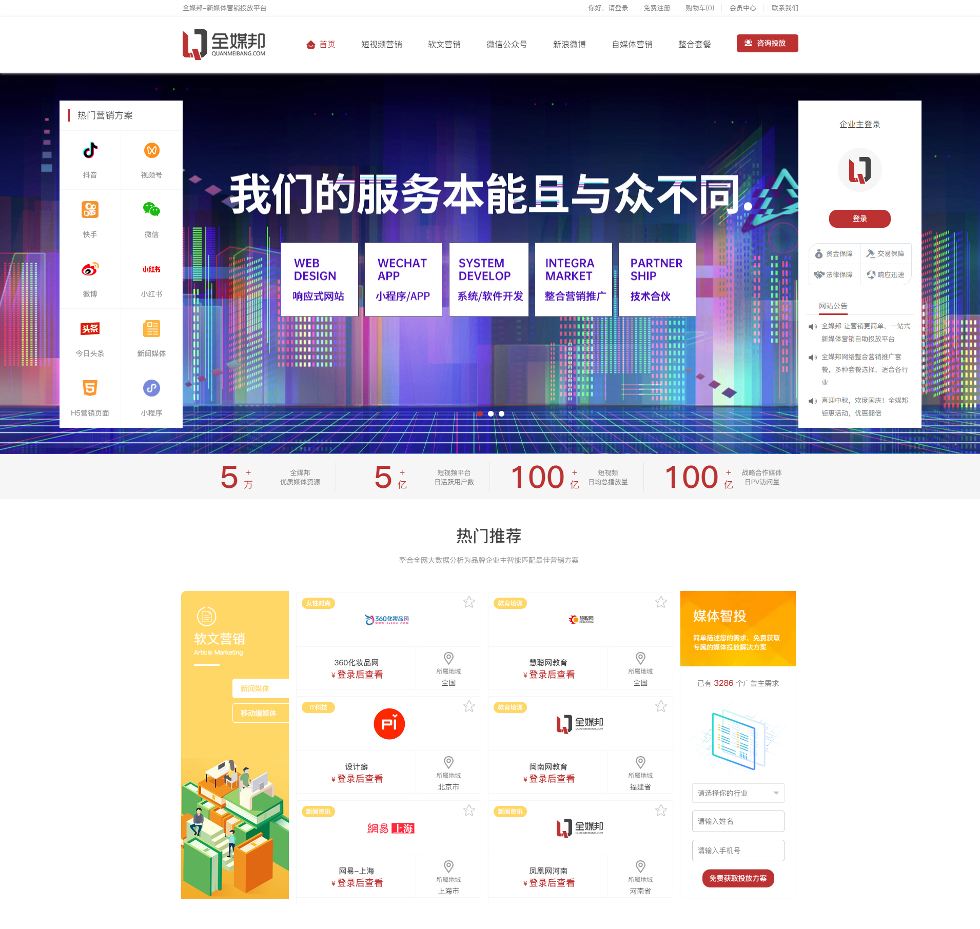全媒邦隶属于佛山市志派网络科技有限公司旗下品牌,致力于为企业构建新媒体传播时代高效、精准的全新营销生态,从而帮助企业实现品牌价值提升。以帮助客户做好新媒营销传播为使命,解决传统企业流量难题。