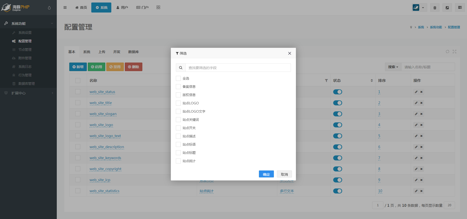 DolphinPHP提供了一系列针对构建数据表格的方法,可以帮助开发者快速构建数据表格,集成快速编辑、模糊搜索、字段排序、字段搜索、时间段搜索等功能。
