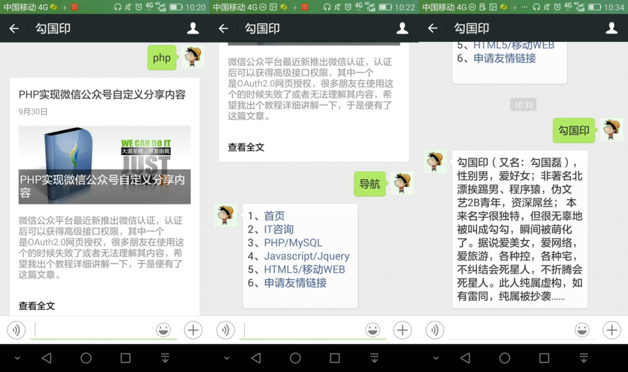 演示效果大家可以微信公众账号搜索"gouguoyin"或者扫一扫下面的二维码