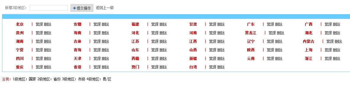 <font color="red">注视:</font>1级地区:国家 2级地区:省份 3级地区:市级 4级地区:县/区