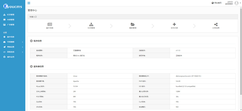 演示网址:http://demo.eyoucms.com/