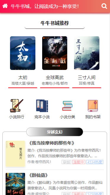 Thinkphp全新UI自动采集小说网站源码,新出粉色烂漫风格,深度seo优化,深受搜索引擎喜爱,自动采集+自动推送+自适应电脑手机访问