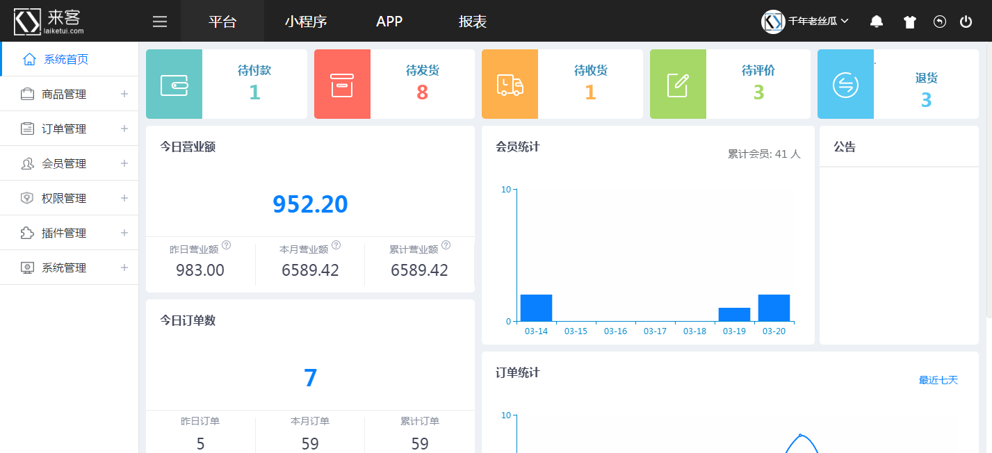 演示地址:https://xiaochengxu.laiketui.com/duan/LKT/index.php (账号:admin 密码:000000)