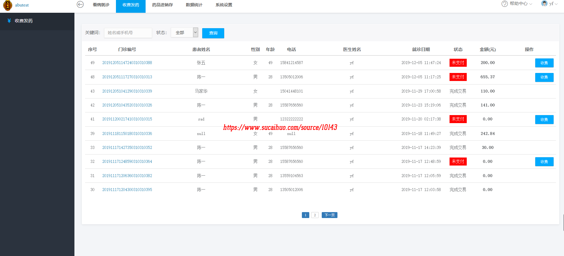 基于ThinkPHP开发的一款医疗门诊系统源码,专业用于医疗进销存数据统计的管理系统,功能齐全,使用方便。