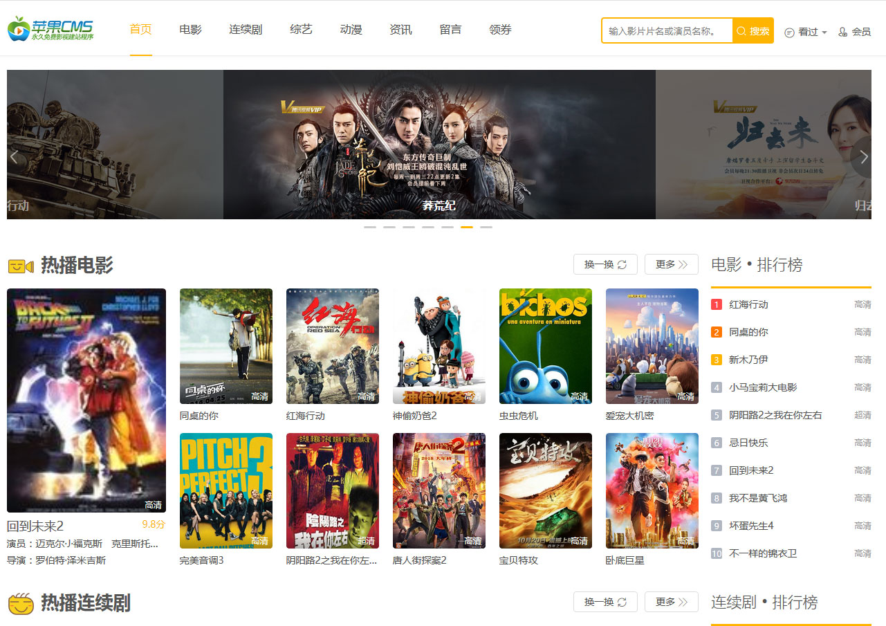 基于Thinkphp5开发的响应式苹果CMS V10模板,高端大气自适应的电影模板