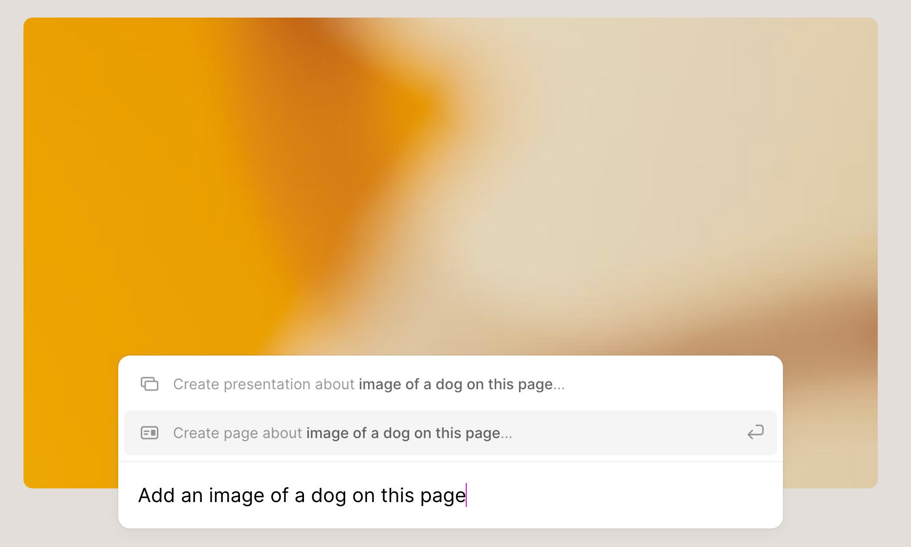 用 Tome 尝试制作幻灯片时,我先是要求给幻灯片添加一幅狗的图像。