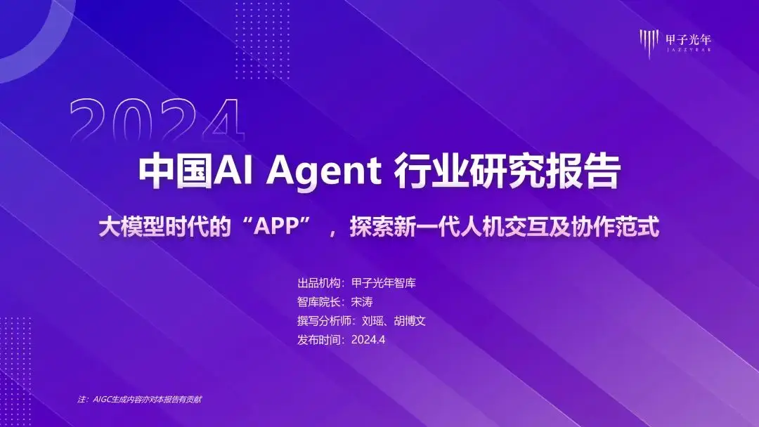 ### 《甲子光年:中国AI Agent 行业研究报告》