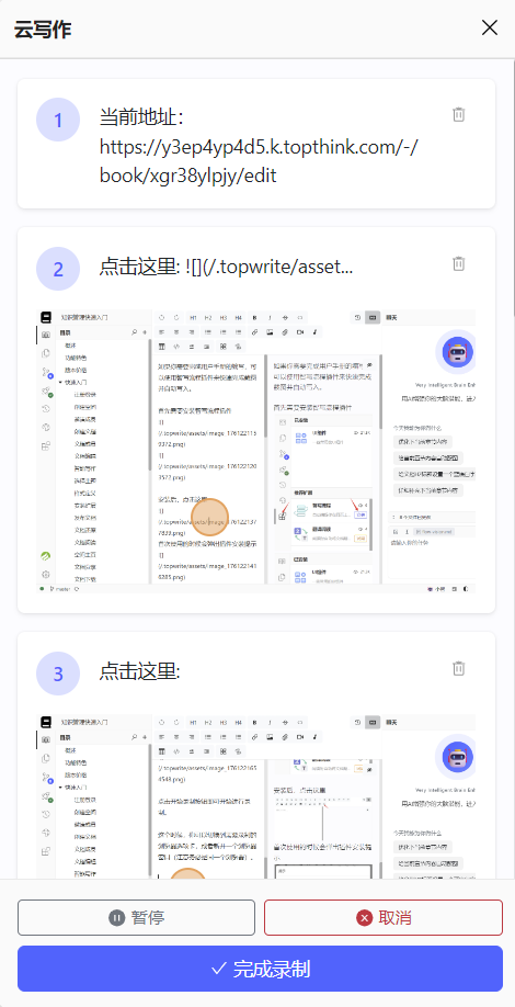 录制完成后,只需点击确认,所有内容就会自动插入到您的文档中,形成完整的操作指南。