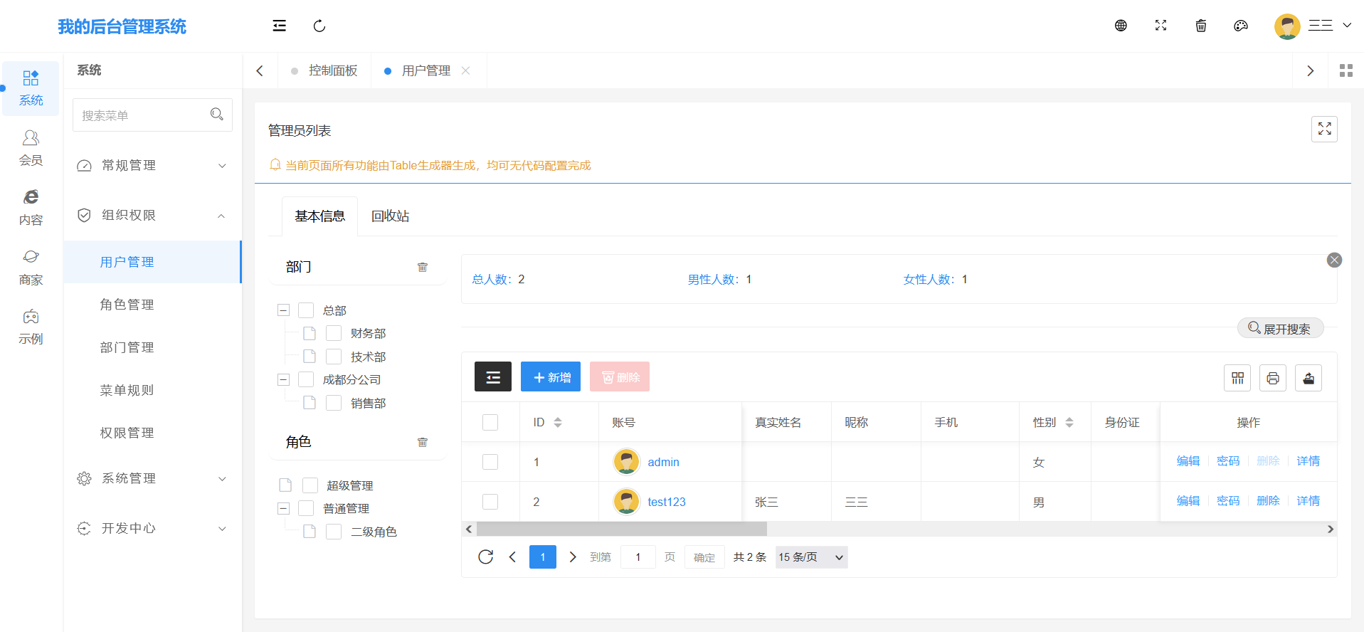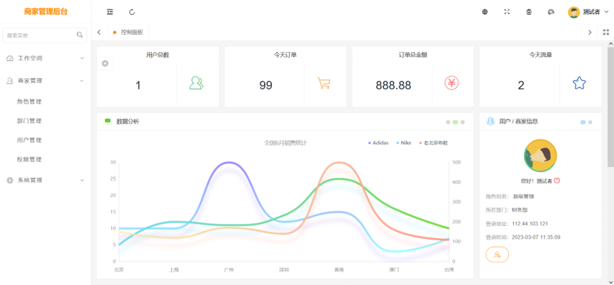 1、支持商户管理(中台)快速开发,用于SAAS项目类的开发