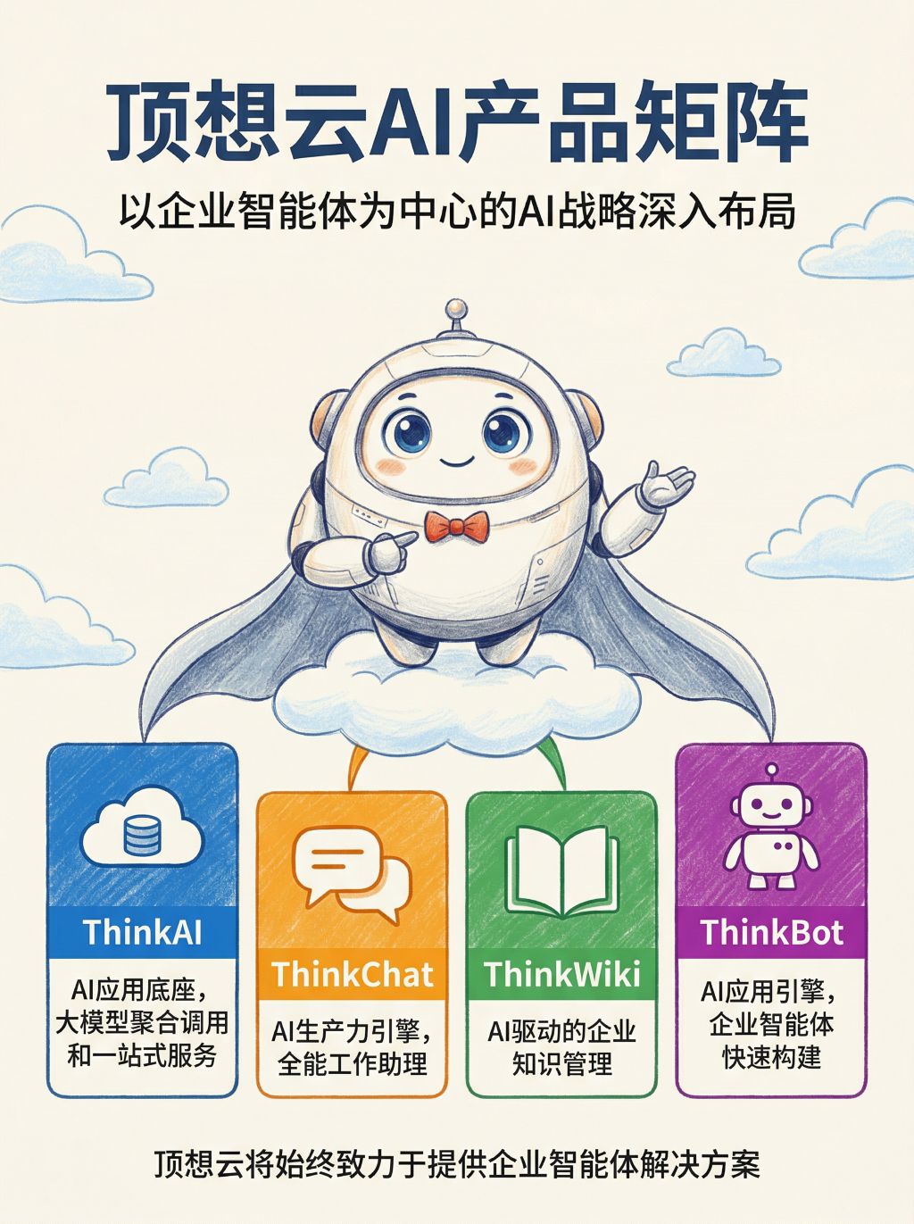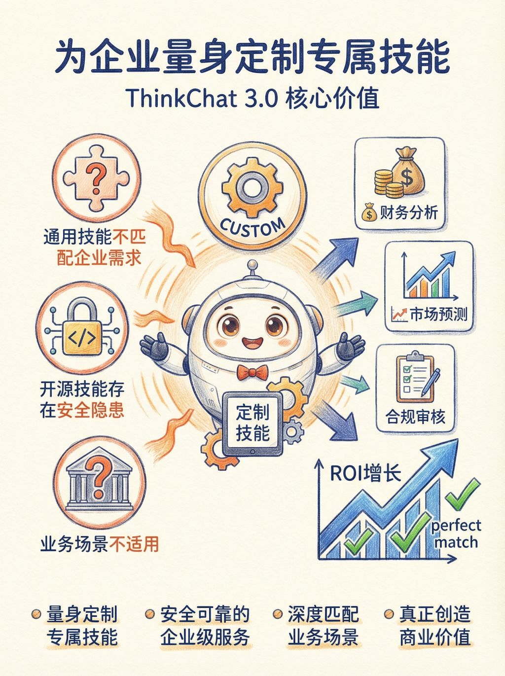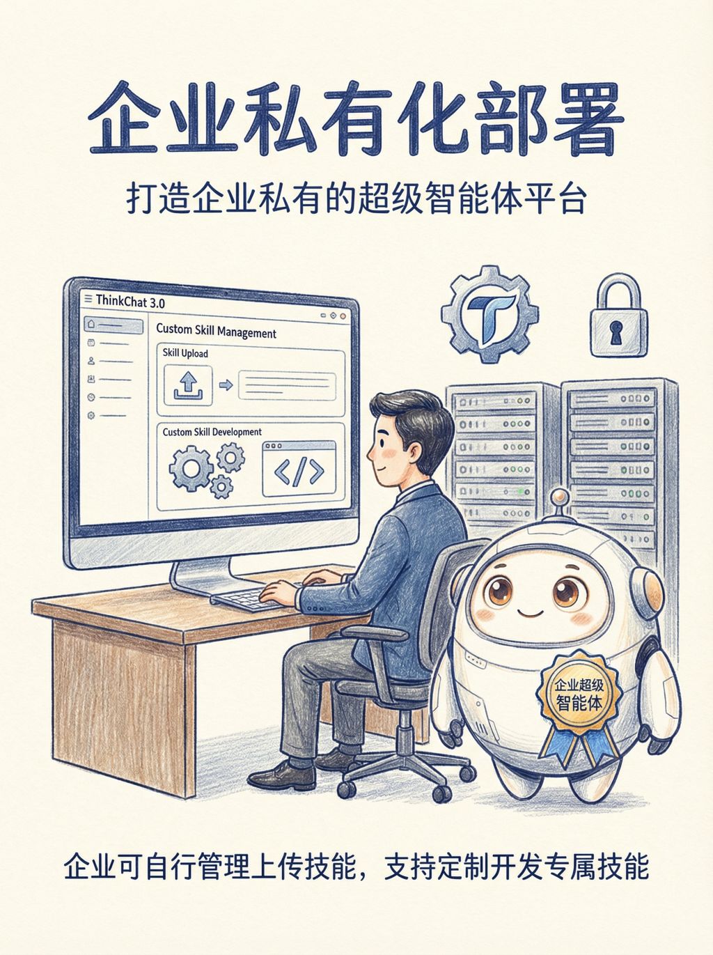 > 大多数AI工具"生产力有限"?通用技能无法满足企业需求?ThinkChat 3.0 来了——从1.0聊天工具到2.0插件平台,再到3.0技能架构,我们为企业打造真正能"交付成果"的AI生产力引擎。7大核心技能 + 量身定制专属服务,让AI真正为企业创造价值。