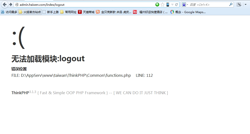 要以http://admin.haiwen.com/index.php/Index/logout这种形式访问就没问题!可是我已经开启了重写功能。index.php舍弃了