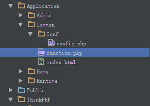 问题描述:在Application下建立了两个模块,分别是Admin 和Home,为了让两个模块使用同样的公共函数和应用配置文件,我按下图所示写出了公共函数function.php和Conf/config.php,也在入口文件index.php中重新定义了COMM_PATH为