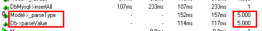 通过xdebug 分析发现,TP对插入的五个字段进行了 五千次的验证过滤操作