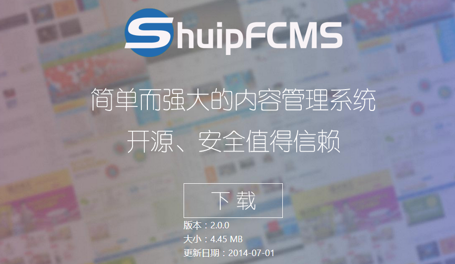最新版ShuipFCMS 2.0.0 下载地址:http://www.shuipfcms.com/download.shtml