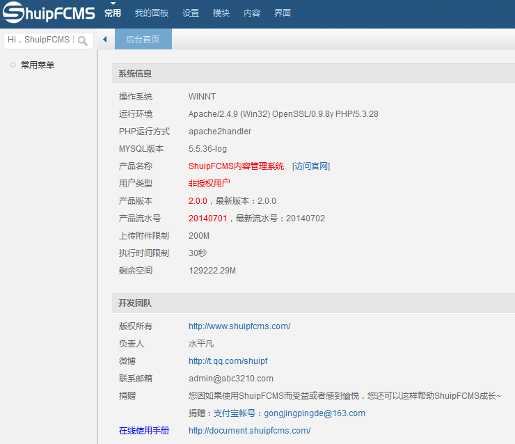 ShuipFCMS 2.0.0 正式版发布,这是一个全新的版本,基于ThinkPHP 3.2.2开发,PHP环境要求也从最低的5.2提升到5.3。