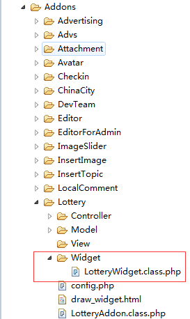 addons里有个Lottery插件,我在插件里面创了个widget目录,但是怎么应该在页面进行调用呢