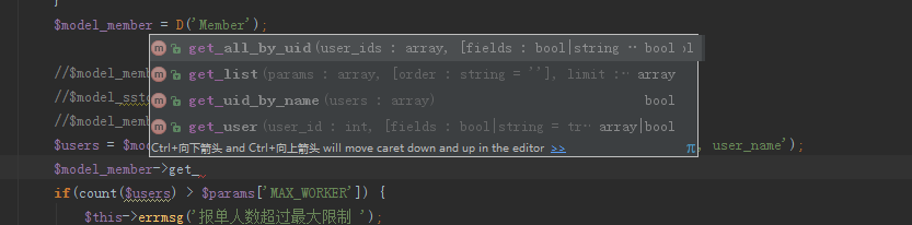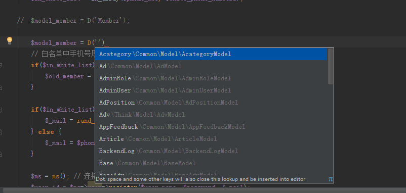 基本实现了类名的自动补全,自动关联模型文件,方法自动补全。