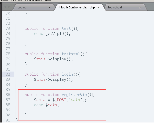 在控制里面定义了一个方法registervip