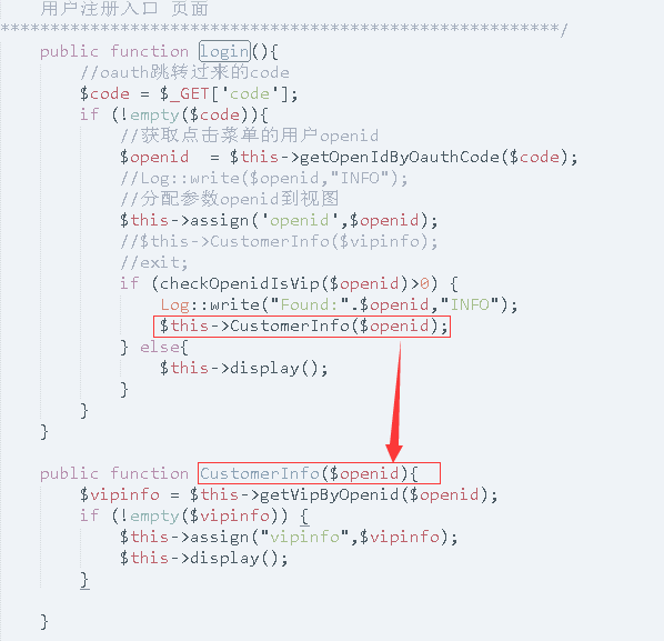 根据oauth的code来获取微信的openid,判断是否已注册,如果是则跳转会员中心(CustomerInfo),否则在login控制器