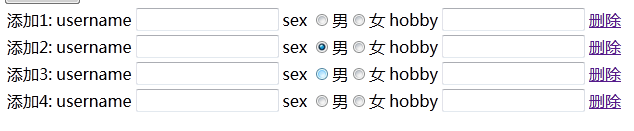<input type="radio" name="sex[]" value='0'/>女</td>