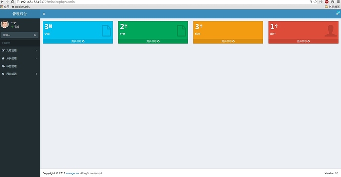 后台功能也开发好了一部分,访问 index.php/admin,用户名:roy 密码:123456