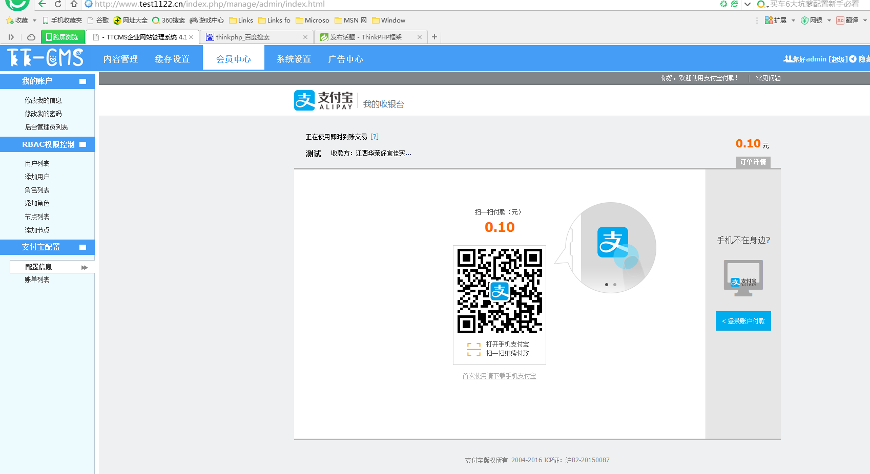 TTCMS分享,集成支付宝接口,加群下载源码526195537