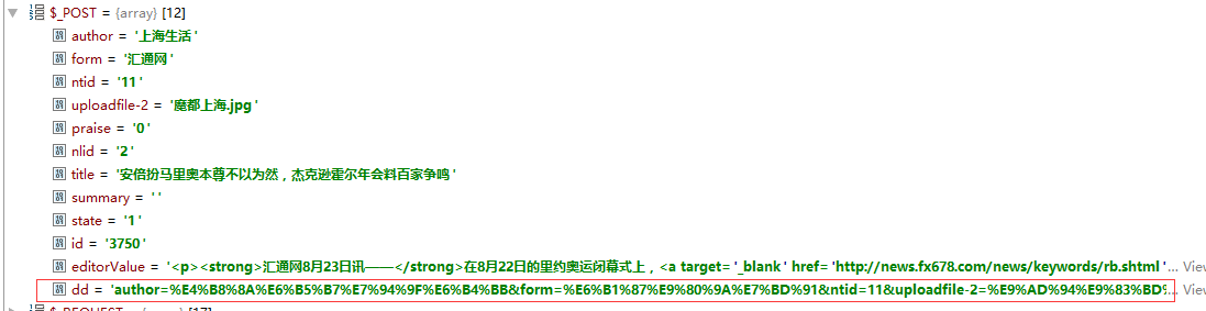 发现所有的字符都被拆分成单个字符上传了,如果表单提交内容过多,$_POST[] 长度将达到 10几万