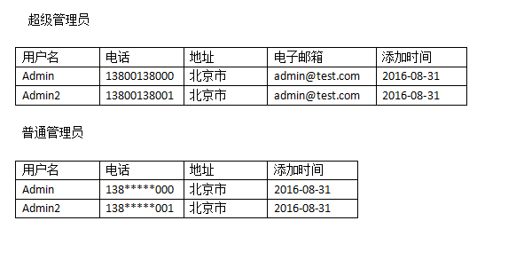 例如超级管理员可以看到所有的,而一些低权限的用户组则看不到某字段,或者例如电话号码的中间几位用*号代替