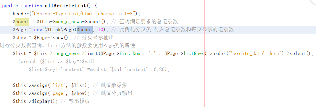$Page = new \Think\Page($count, 10); // 实例化分页类 传入总记录数和每页显示的记录数
