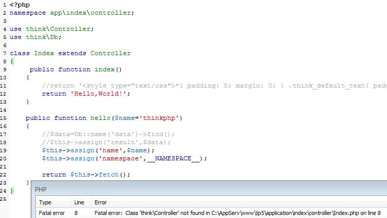 按照官方出的5.0快速入门手册里的代码,PHPDesigner里进行debug时出现