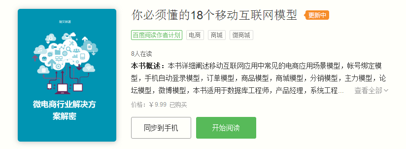 本书已经发布在百度阅读平台,售价9.9元.