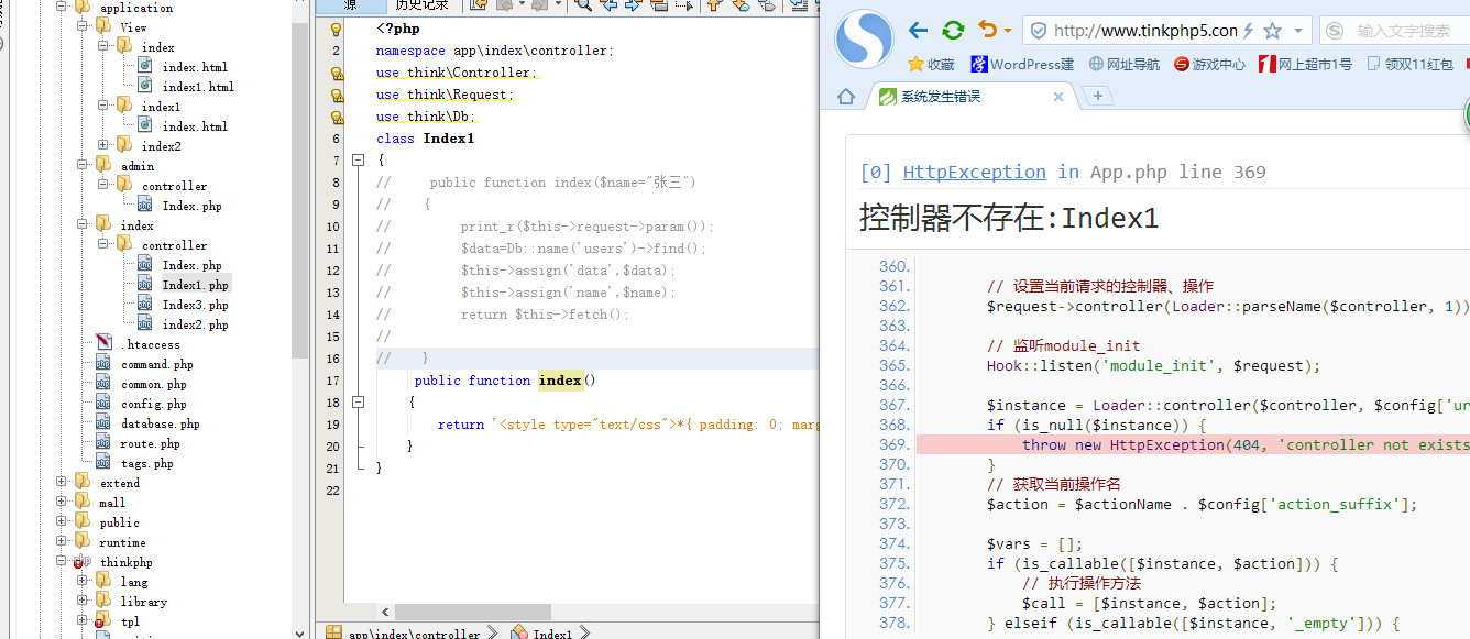 自己新建一个控制器访问提示控制器index1不存在