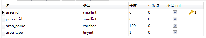 `area_type` tinyint(1) NOT NULL DEFAULT '2' COMMENT '地区类型 0:国家,1:省,2:市,3:市辖区/县',
