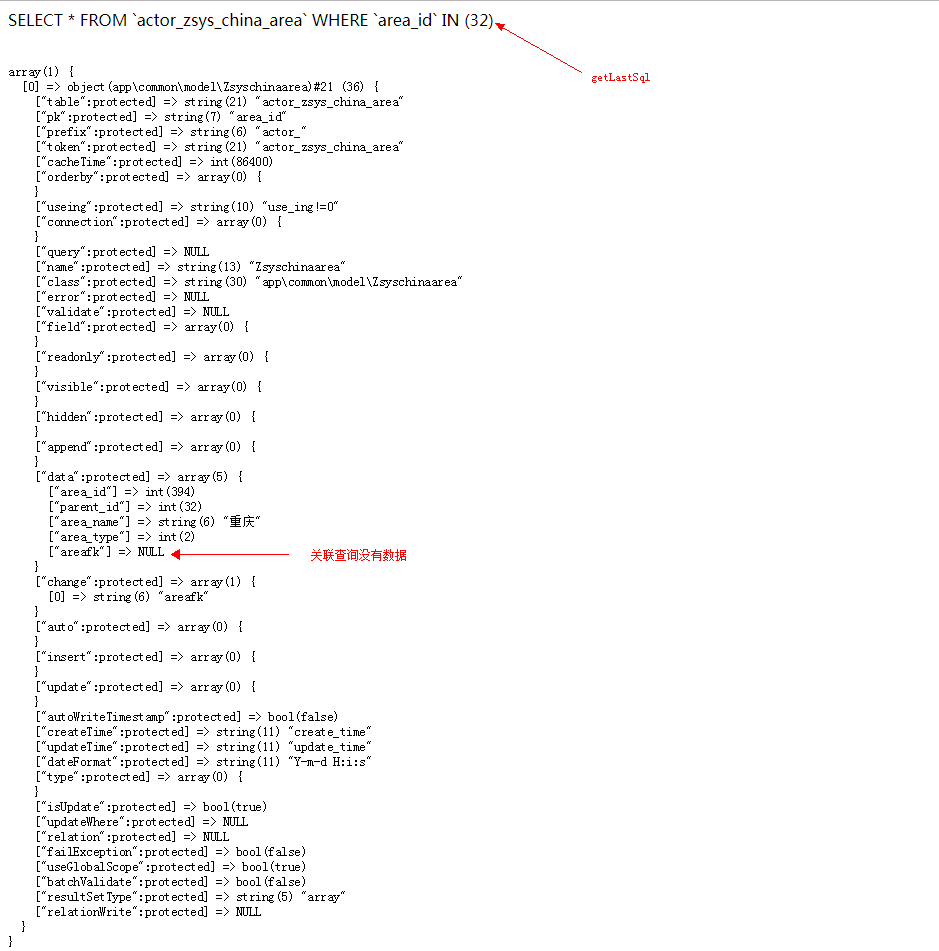 为什么我模型里面的关联预载入方法with_areafk查询处理结果为空呢?单独areafk方法查询结果是正确的。 areapk方法里面查询处理结果也是正确的?