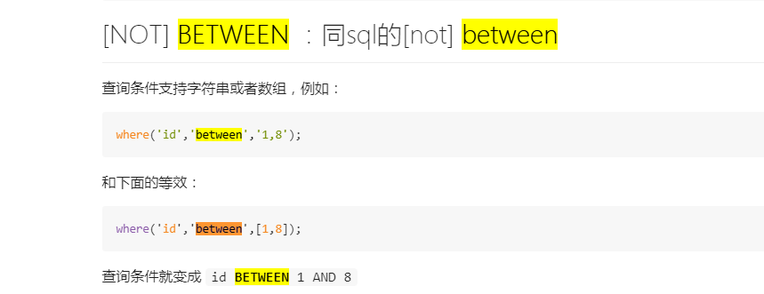 谢谢官方的接答 问题已经解决了,在TP5文档中的“ 查询构造器->查询语法->between也就是区间查询 ”