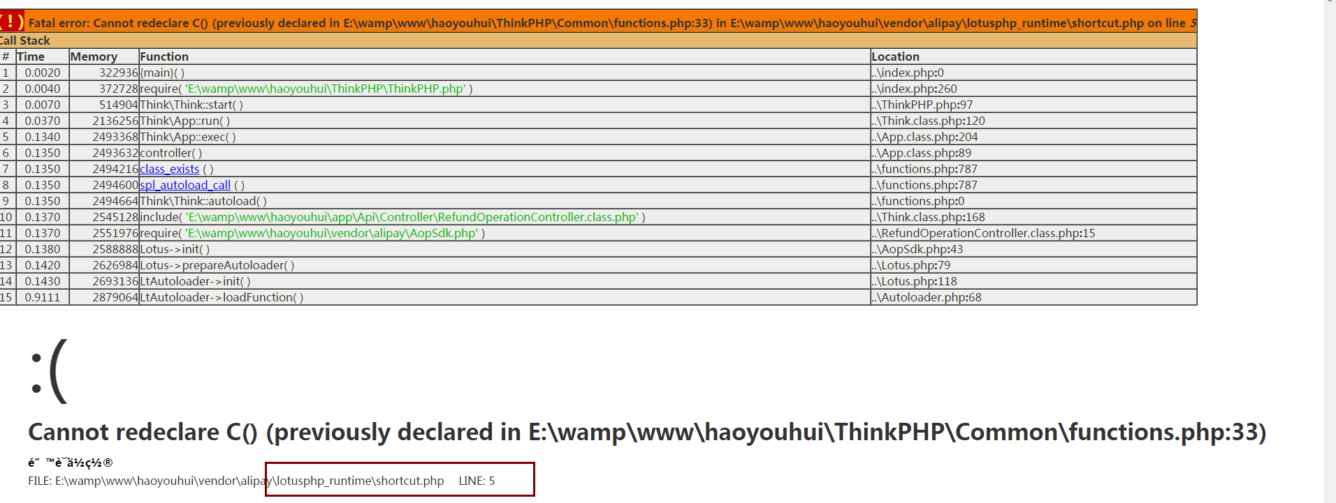 引入了阿里之心的支付接口 tp5没事 tp3 报上面错误