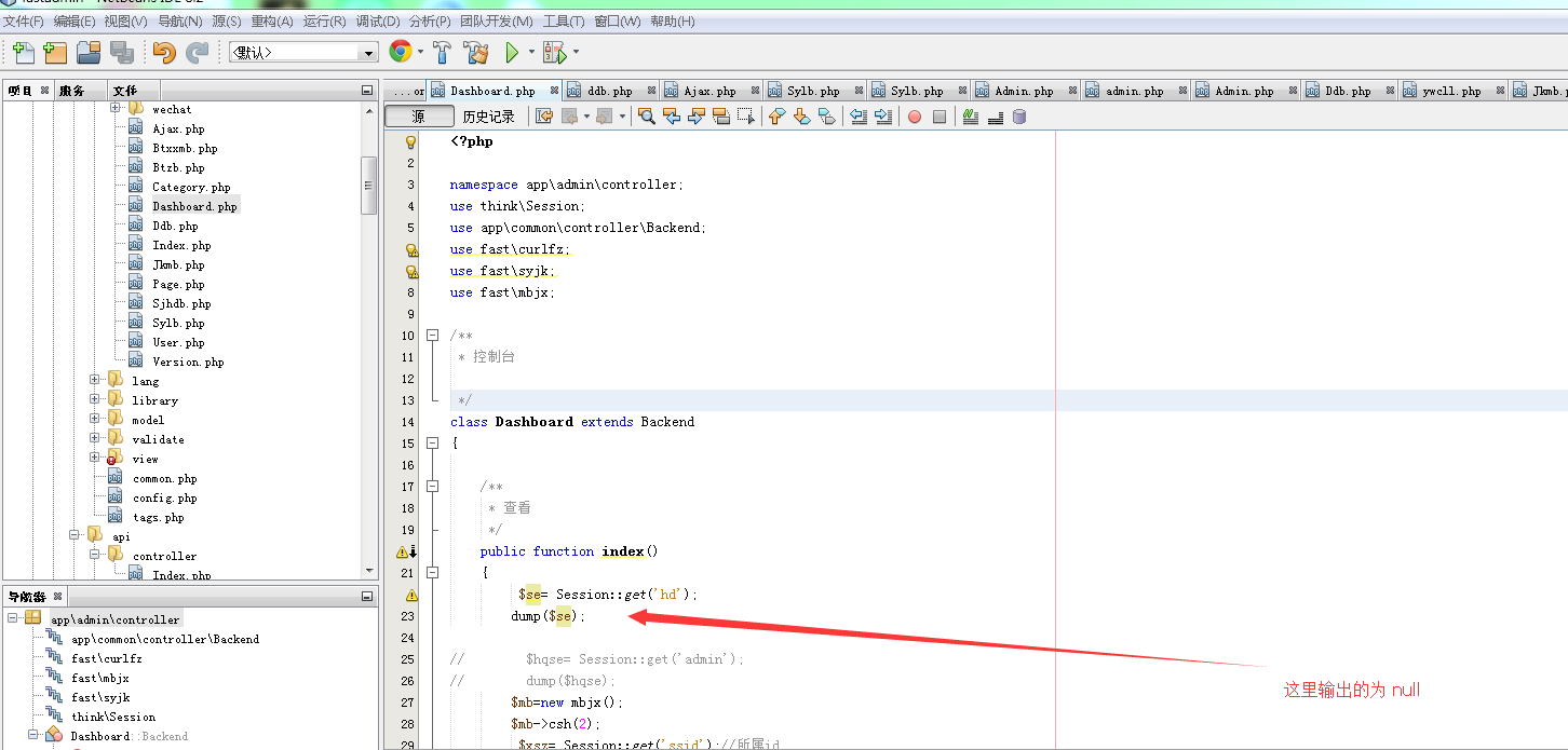 在 namespace app\api\controller;设置session 本控制器中可以dump出来 到了namespace app\admin\controller; dump 就是null了
