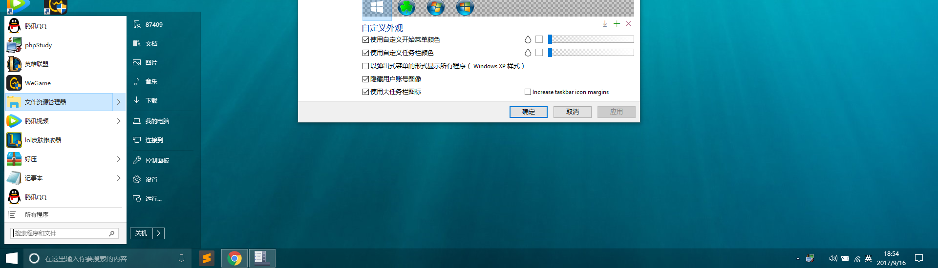 这软件可以让任务栏和菜单变成win8 win7的样式,还可以变透明