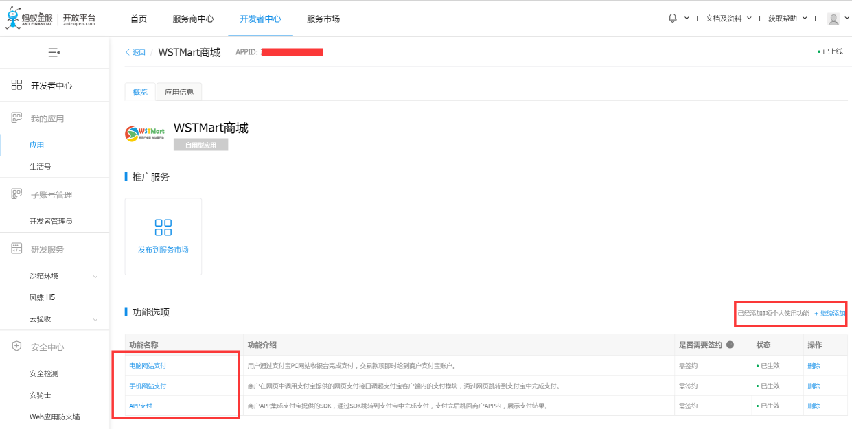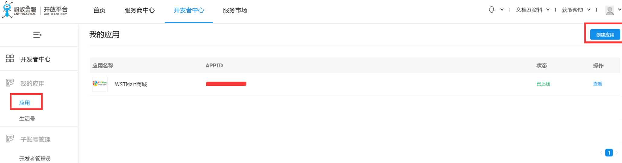 2. 登录蚂蚁金服开发平台创建应用,并签约电脑网站支付
