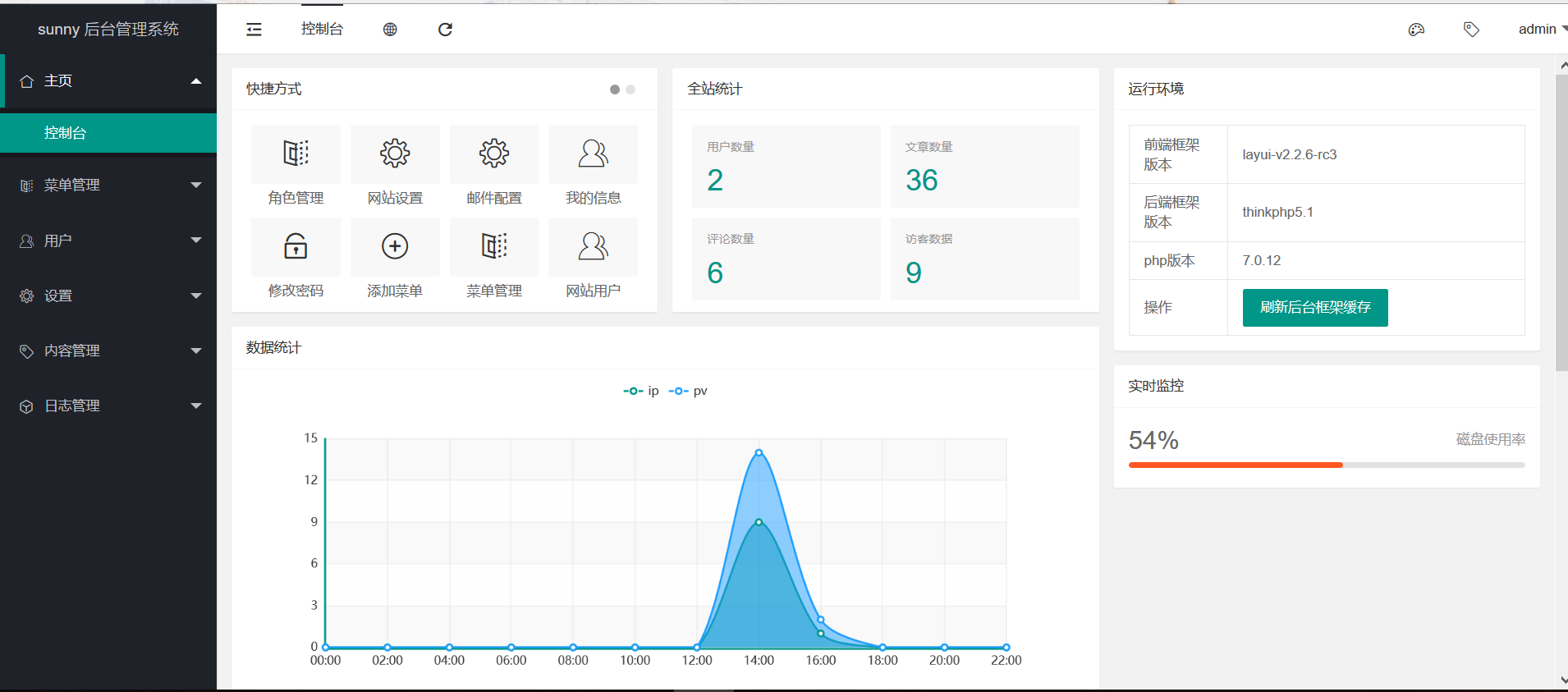 5、 后台增加日志管理及日志的图表分析功能,可以统计网站访客