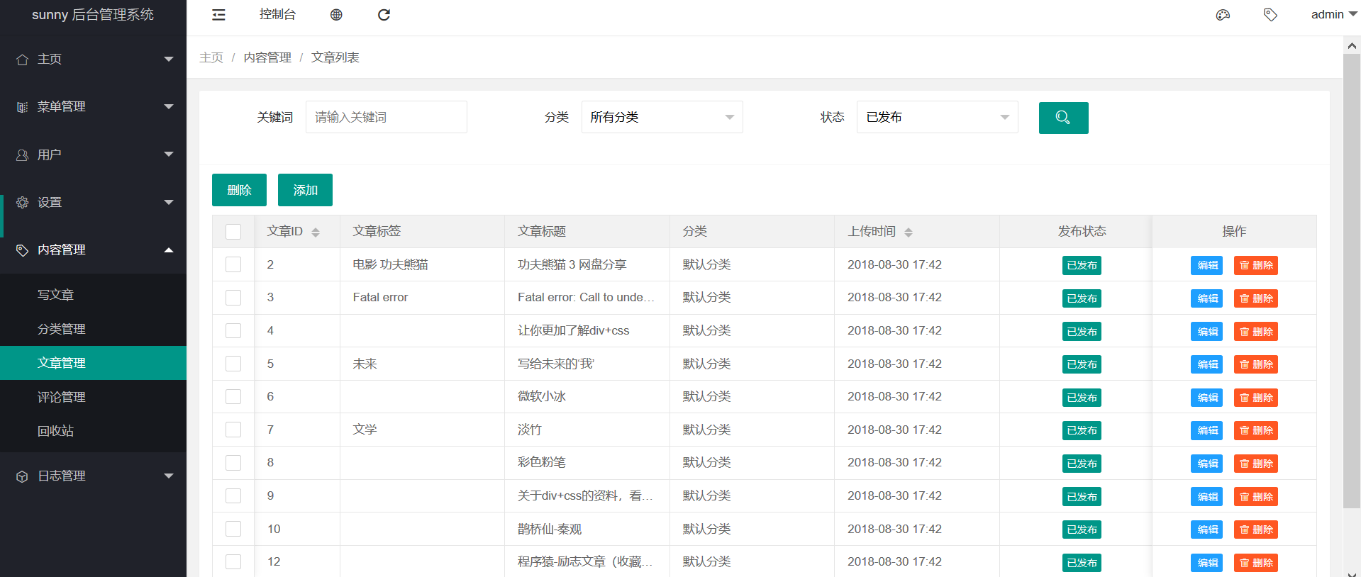 6、 增加了内容管理功能,可以对博客进行管理