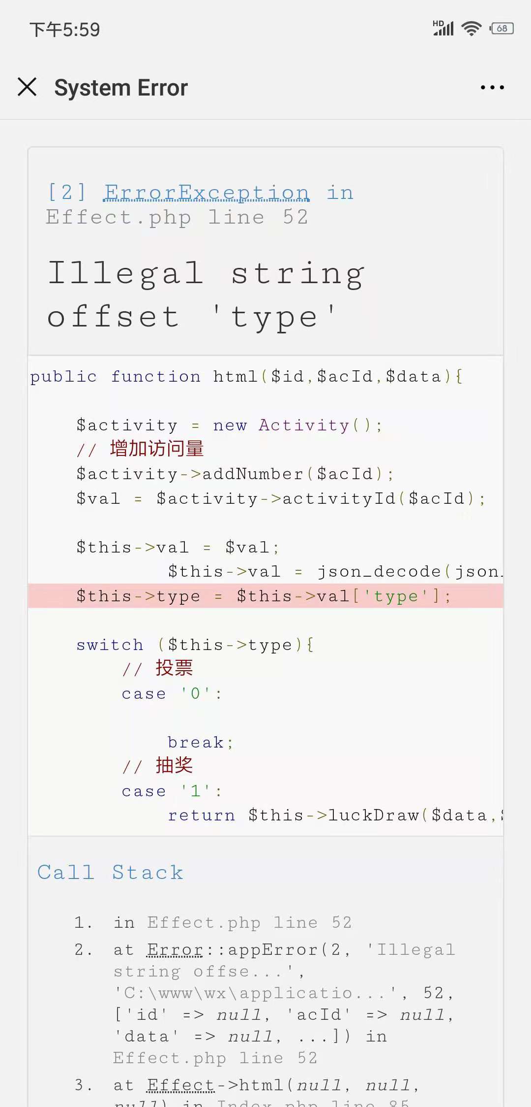 但是呢 能输出值,当获取下标为'type'或者任意其他存在的下标就会报一下错误
