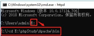 第六步、win+R,输入cmd,打开命令行窗口,切换目录到你原来的Apache下面