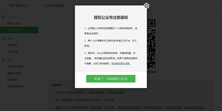 登录微号帮》管理中心》添加公众号,使用管理员手机微信扫码将公众号所有权限授权给微号帮,本功能需要公众号已微信认证成功。