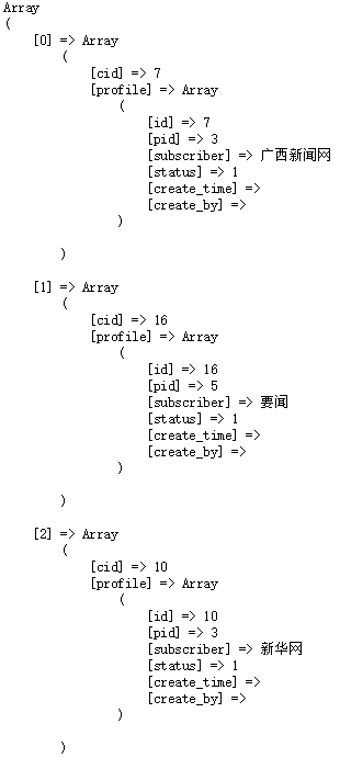 2、能否把查询出来的结果结果集同级显示,而不是一个独立的数组,如profile数组里面的subscriber字段与cid同级展示。