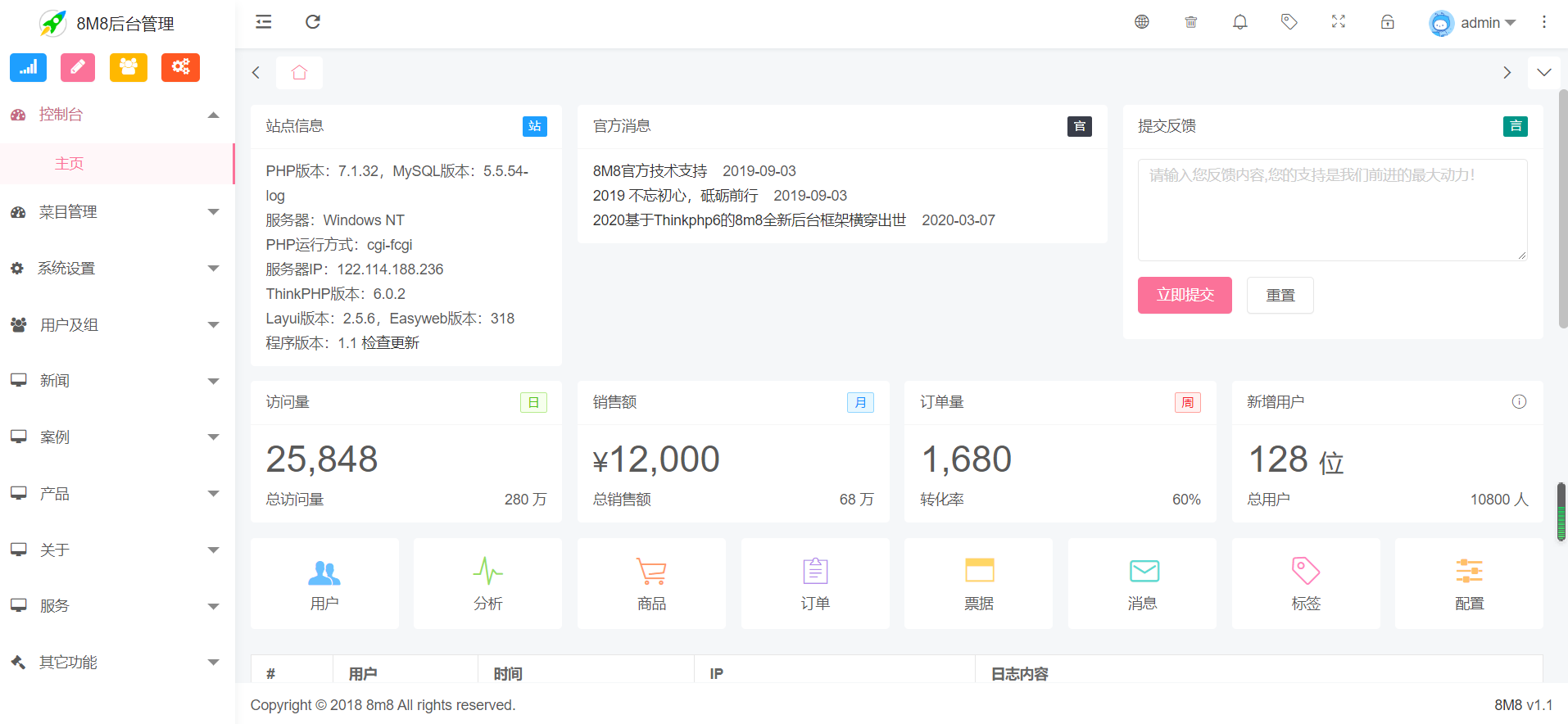 8m8后台开发框架,前后台演示,用tp6与layui编写