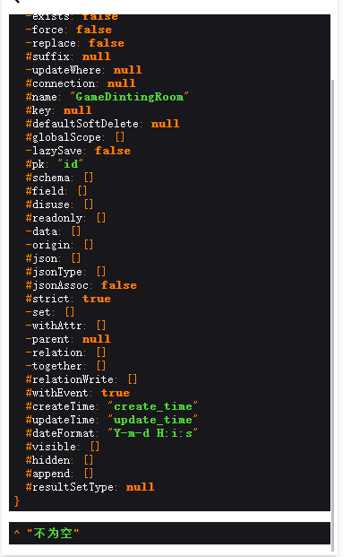 $res = RoomModel::where('id','=',2)->findOrEmpty(); dump($res); if($res->isEmpty){ dump("空"); }else{ dump("不为空"); }