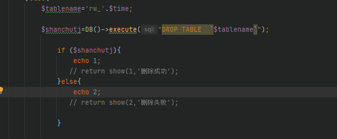 如图 用execute 原生查询 写的是个删除数据表的代码